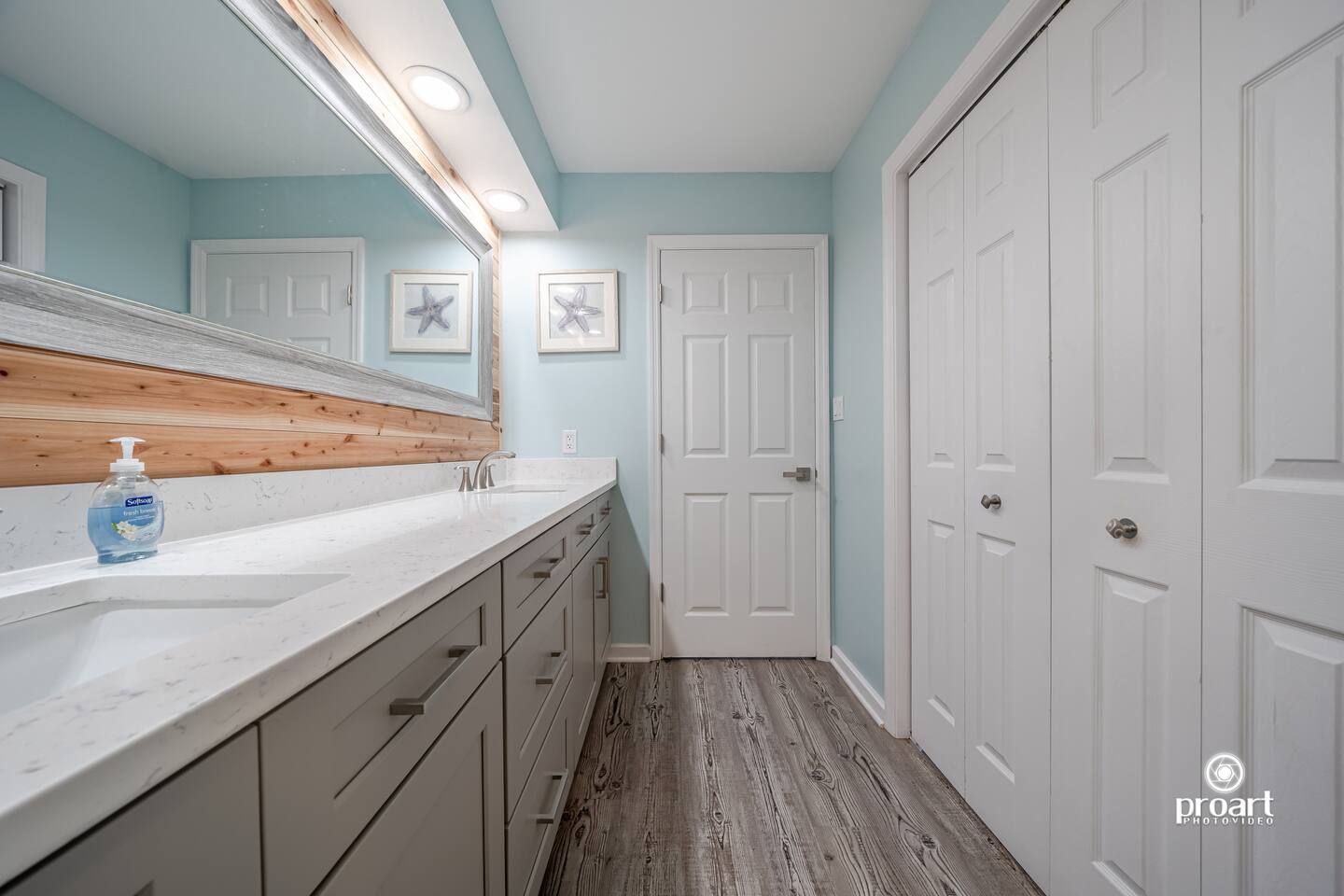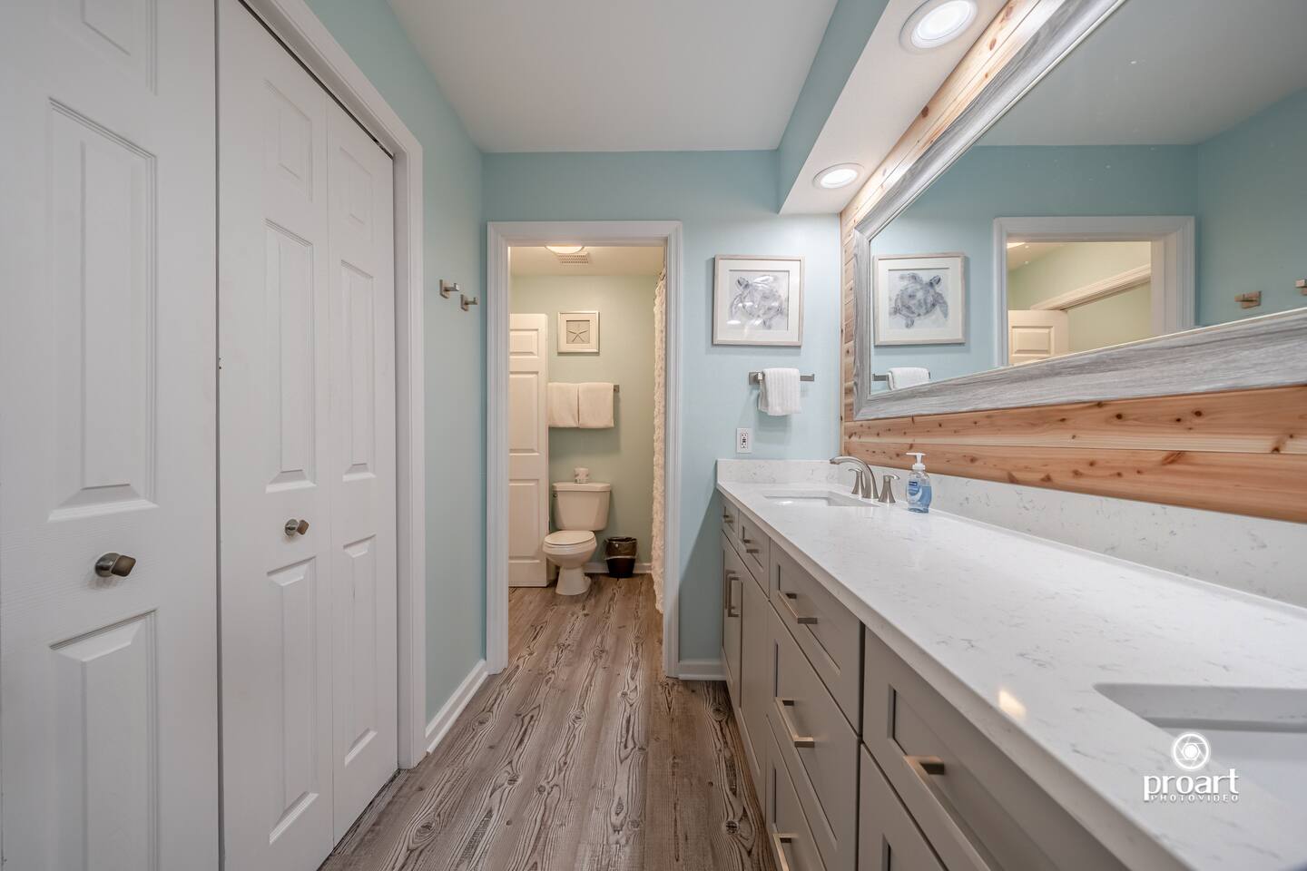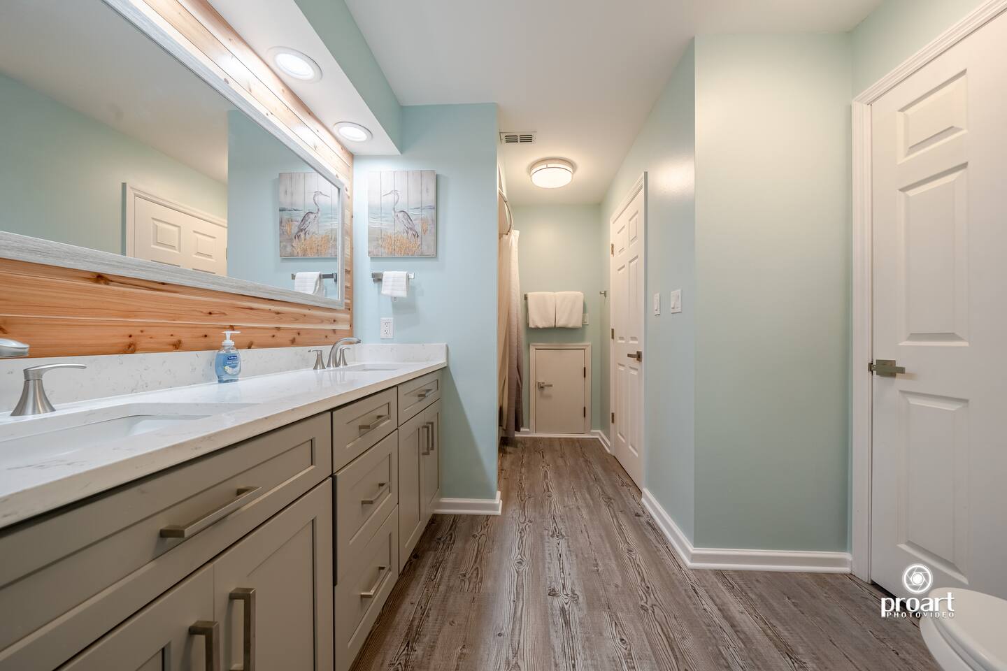 Downstairs master suite with private ensuite bathroom for easy main-floor living. Secluded second bedroom located upstairs for maximum privacy and quiet with a private bathroom.