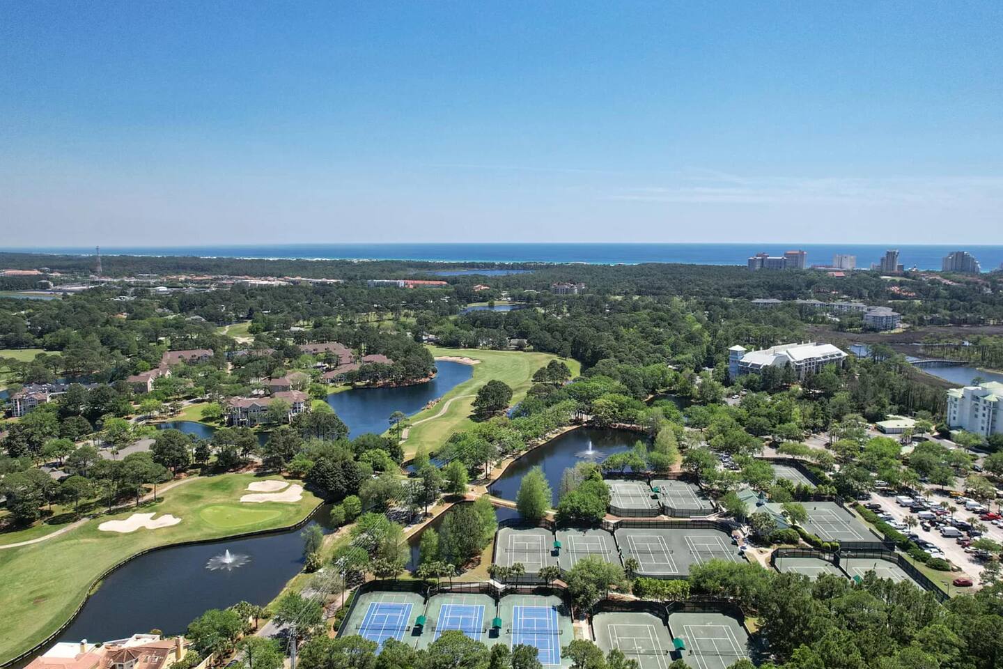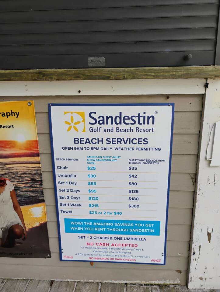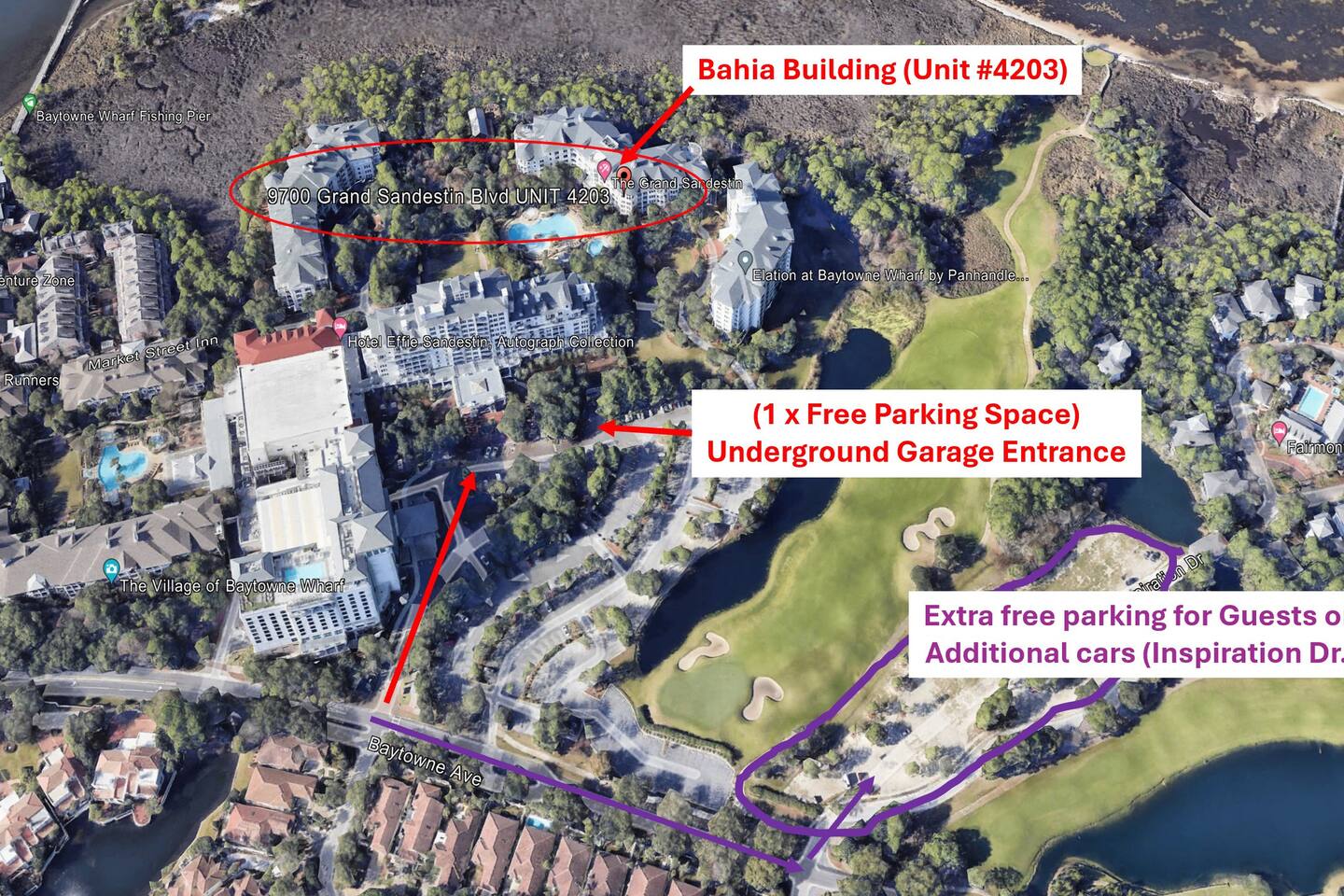 Must be 18 to book. Unit comes with 1 free parking space in a covered underground garage, directly under the unit called Bahia (detailed info is found in directions section). The elevators take you directly to the 2nd floor unit of #4203. The unit offers spectacular view overlooking the pool and has 1 king bed and 1 queen pull out sofa. Extra blankets and sheets are in the closet. Unit also has Keurig and coffee brewing with a sink and mini refrigerator. No Freezer is available but an ice bucket is provided. More about the unit as it is located in Grand Sandestin complex next to the Sandestin Conference Center and the village of Baytowne Wharf at the Bayside of Luxurious Sandestin Resort. It is about two miles away from the beach entrance that is across 98 at the Beachside of Sandestin Resort. You may use the TRAM (beach express runs continuously during high season in front of Grand Sandestin to the beach - 6-8 min ride) or rent bicycles and just ride to the beach (10 min), you may also use your car (6 min) or just walk (45 min) through the many golf courses, lakes and gardens that remind you of Eden. Sandestin is a 2400-acre resort like no other in Florida. The south side of the resort fronts the white sandy beaches of the Gulf of Mexico and the north side of the resort fronts Choctawhatchee Bay. If seven miles of waterfront is not enough, the resort offers amenities for every type of person. These amenities include 4 championship golf courses; 14 tennis courts, of which 11 are clay and 4 are lighted for evening play, biking, hiking, fishing, kayaking, boogie boarding, miniature golf, fabulous restaurants, unique shopping, and an array of additional activities await you. The Sandestin Tram makes it easy to get around. This security gated community provides added safety for the family. With its miles of bike/jogging trails, miles of beaches, restaurants, shops, Baytowne Wharf, and children’s activities, all just inside the resort. The Marina with jet ski and watercraft rentals, Jolee Island, and the multiple tree houses and nature walks are just a part of what this top resort destination offers. You will have plenty to do! Sandestin Kid’s club is very highly rated.