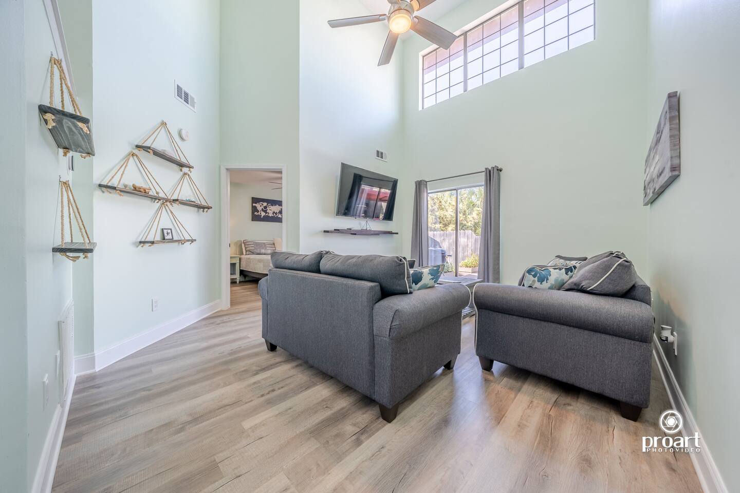 If you're looking for your new perfect favorite vacation home, look no further. This AMAZING town home is located on Holiday Isle neighborhood of Court Del Mar. Just a water taxi ride away from the beautiful Harbor Walk Village! Half bath between the living room and kitchen area for convenience. Large 1st floor master suite has a large walk-in closet, also includes laundry area with full size washer & dryer. Loft area on the second floor with a pull out sofa . Privacy Fenced in back yard with outdoor deck. Short walk to the beach with public beach access Osteen Beach. This AMAZING 3 Bedroom / 2.5 Bath townhome is in Court Del Mar neighborhood. Half bath between the living room and kitchen area for convenience. Large 1st floor master suite has a large walk-in closet. Spacious guest bedrooms also includes walk in closet. This home located in the serene community of Court Del Mar will check all the boxes for your ideal vacation rental. There are 2 parking spaces for 2 vehicles. The first floor offers an open kitchen with all full size appliances to cook a quick breakfast or your catch of the day, after spending the day on the water, and a large dining table Also on this floor is the first guest room with a private bathroom and a laundry room with a full size washer and dryer. The second floor offers 1 guests room that with a bathroom with double sink, and a loft with a sleeper sofa. The sofa upstairs function as sofa sleeper as well allowing this home to comfortably sleep 8 total.