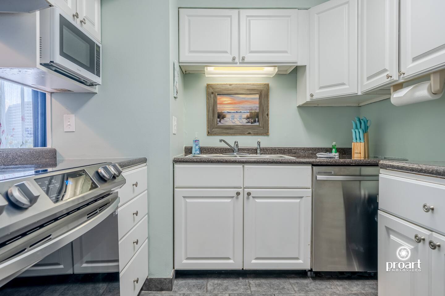 Please note that the large refrigerator is currently awaiting a warranty replacement of its compressor from LG. A temporary mini-fridge has been provided for your convenience during your stay.